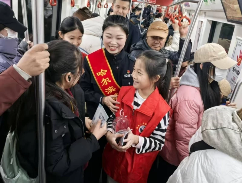 地铁站厅里,“龙江好人帮”志愿者们策划的禁毒防艾“快闪”活动,更是让安全知识“活”了起来。没有复杂的流程,志愿者们一开口就是接地气的顺口溜:“糖果奶茶要分清,不是零食是陷阱;防艾知识记心间,健康生活乐无边!”朗朗上口的句子刚落,就引来候车乘客的阵阵回应。志愿者们趁机递上宣传折页,还发起了“小问答赢小礼品”的互动——“新型毒品最常见的伪装是什么?”“艾滋病的主要传播途径有哪些?”问题一抛出,乘客们纷纷举手抢答,答对的市民接过志愿者送上的红丝带,当场就系在了手腕上。