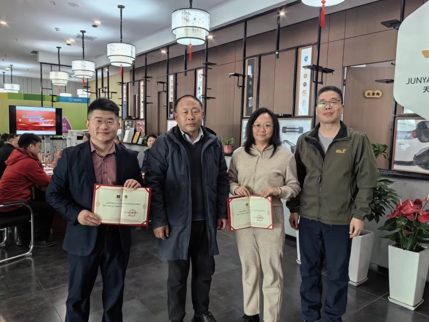 在全场嘉宾的见证下,会议逐项推进各项议程,高潮迭起。第一项议程中,新区工商联党组成员、副主席杨立学,区工商联法律服务部部长赵丽茹、新区劳动人事争议仲裁院赵甫院长与商会王富军会长共同为天津市河南洛阳商会劳动争议调解委员会揭牌。红绸落下,标志着调解委员会正式投入运行,商会服务矩阵再添“法治新翼”,现场掌声雷动,久久不息。