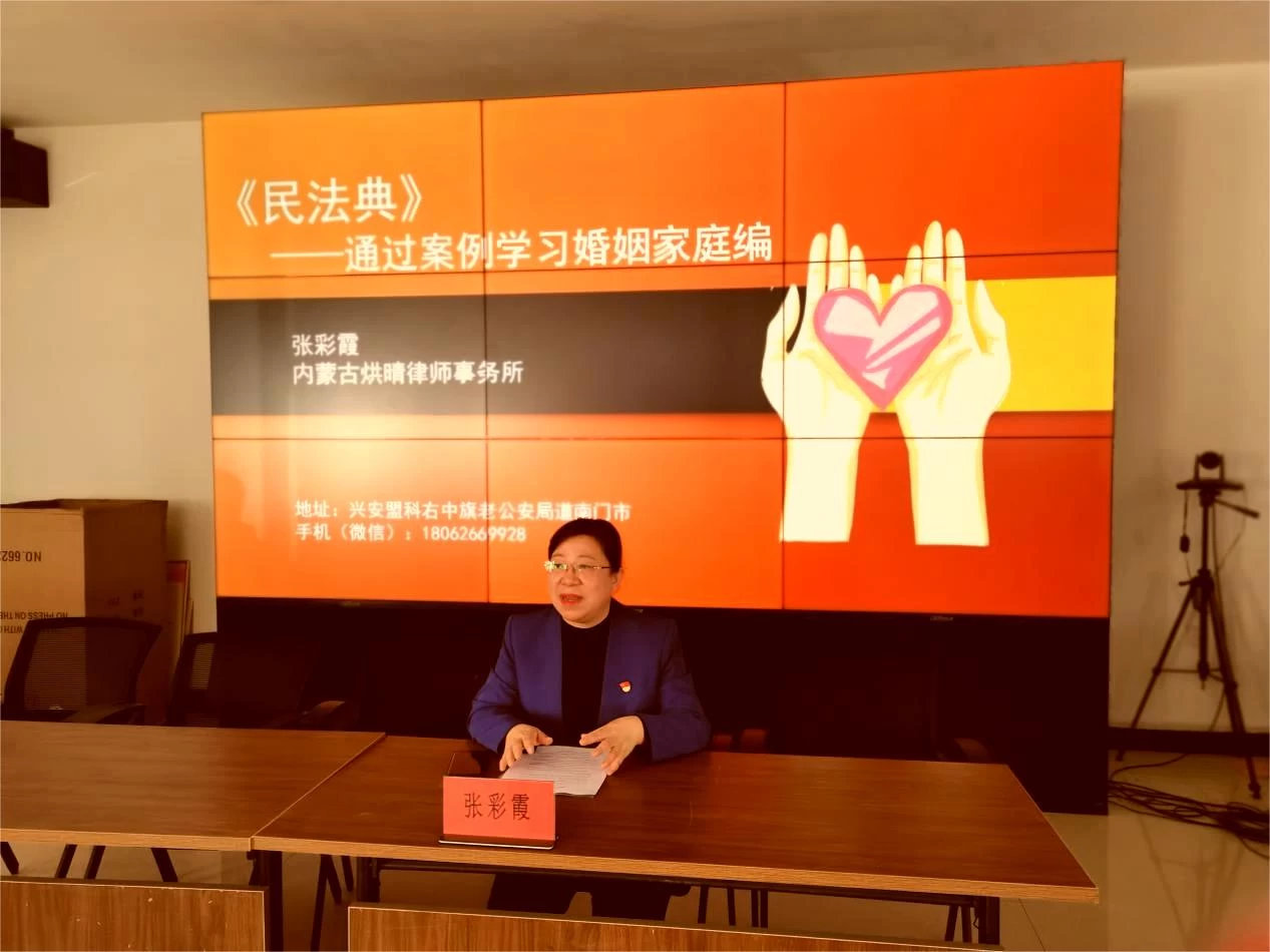 (张彩霞律师于2021年5月在政府单位普及《民法典》相关法律知识)