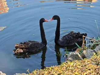 据了解,2025年秋天,一对名为“达达”与“优优”的黑天鹅被外地夫妇放生至大连儿童公园明泽湖,很快成为园区的“明星”。黑天鹅优雅的体态吸引了众多家长带孩子观赏、摄影爱好者驻足记录,成为了城市里人与自然和谐共处的生动场景。随着冬季来临,公园管理方还特意为它们搭建了温暖的窝棚,助力其安全过冬。