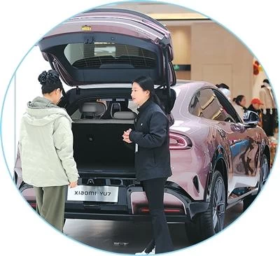 近来,部分省份针对汽车、家电、成品油等特定行业发出发票“红包”,吸引消费者。图为四川省乐山市市中区一大型商场里,消费者在了解试乘新能源汽车。