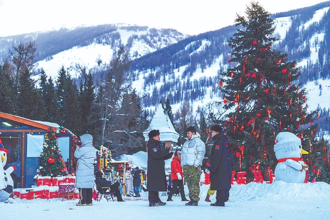 民警在喀纳斯湖边码头区域为游客做安全提示 2026-01-14 11:05 桂胜博 连日来,新疆出入境边防检查总站阿勒泰边境管理支队喀纳斯边境派出所开展冰雪旅游季护航行动,持续加大景区巡逻安保力度,排查安全隐患,开展安全宣传,全力为边境地区冰雪旅游保驾护航。图为1月13日,民警在喀纳斯湖边码头区域为游客做安全提示。赵桂锐 摄