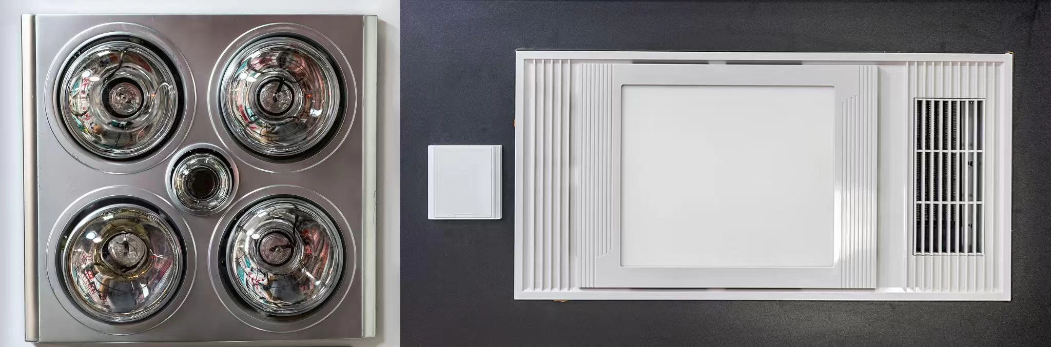△左图为灯暖型浴霸;右图为风暖型浴霸