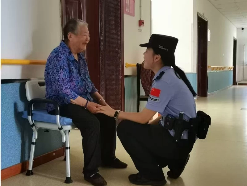 她不只是来走访,而是真正坐下来,耐心地给老人喂饭,陪着做康复按摩,倾听他们或清晰或琐碎的往事。最让她难忘的是与一位卧床的叶奶奶长达3小时的交流,这位曾为教育事业奉献一生的老人,诉说着自己的辉煌过往,也道出了晚年深藏的无助与忧虑,叶蕾紧紧握着她的手,没有打断,只是静静聆听。那一刻,警服赋予她的不仅是责任,更是成为一位值得托付信任的“女儿”的角色,叶奶奶倾诉后感慨:“跟你说了这些,心里松快多了。你在这儿,我们觉得安全。”