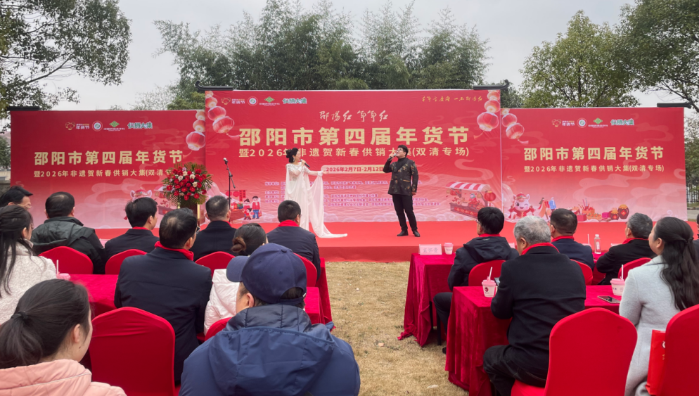 贺新春:传承非遗,红品飘香。2月8日上午,作为市区系列活动的压轴之作,“邵阳红·年年红”新春购物年货节大祥区专场,在湖南邵阳火车站魏源广场拉开了邵阳市第四届年货节市区三大专场联动的序幕。活动以红品为媒、非遗为韵,为市民送上一场兼具年味、乡味与文化味的新春盛宴。