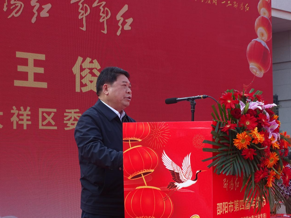 大祥区委书记王俊在致辞中表示:本次年货节是区委、区政府落实促消费、惠民生、助振兴的具体举措,依托火车站交通枢纽优势,服务返乡客流、惠及本地市民,以优质农产、特色美食、文化惠民传递新春温暖,进一步擦亮“邵阳红”品牌与大祥城市窗口形象。“邵阳红”优质农产品公共品牌促进会常务副会长兼秘书长王铭祥指出,本届年货节坚持“产品惠民、文化润民、美食暖民”理念,让“邵阳红”品牌更有烟火气、更具人情味,让年货节既有“销量”,更有“温度”。