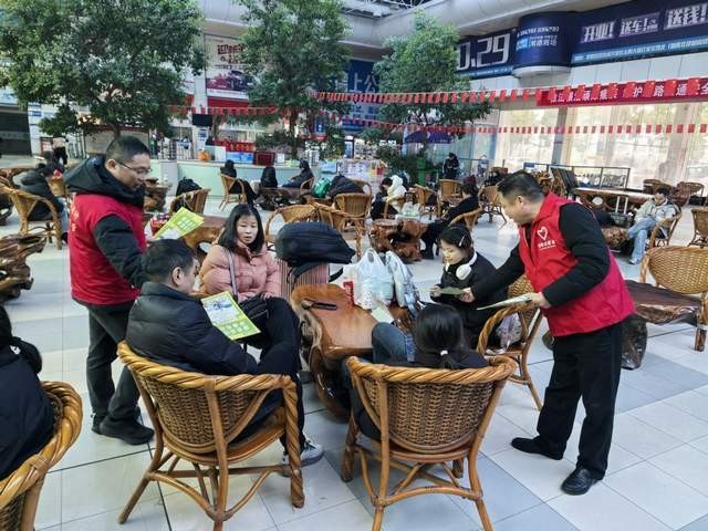 活动中,身着红色志愿者马甲的党员们活跃在车站的各个角落——有的在安检口、候车厅为旅客提供路线咨询和乘车引导,耐心解答班次信息;有的在便民服务台供应热水、姜茶,并备好应急药品、口罩等物资;有的帮助老年旅客搬运行李,协助带小孩的旅客安全通行;还有的向旅客发放交通安全宣传册,讲解春运期间出行注意事项,增强群众安全防范意识。一抹抹“志愿红”穿梭于人流之中,成为春运车站里一道亮丽的风景线。