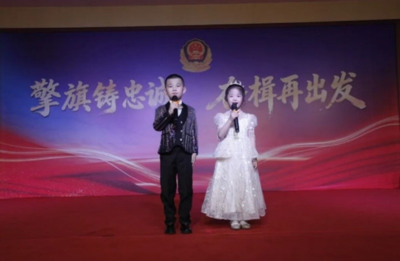 表演唱《孤勇者》,深情诠释了平凡英雄的坚守与担当,致敬每一位默默奉献的公安人。《警娃的心声》,通过稚嫩的童声,道出了警娃们对警察父母的爱与牵挂,让现场观众深受感动,也向默默支持公安工作的警属们致以诚挚谢意。诗朗诵《守护》,深情讲述了公安民警从晨光熹微到夜色深沉的坚守,书写了“人民公安为人民”的庄严誓言。