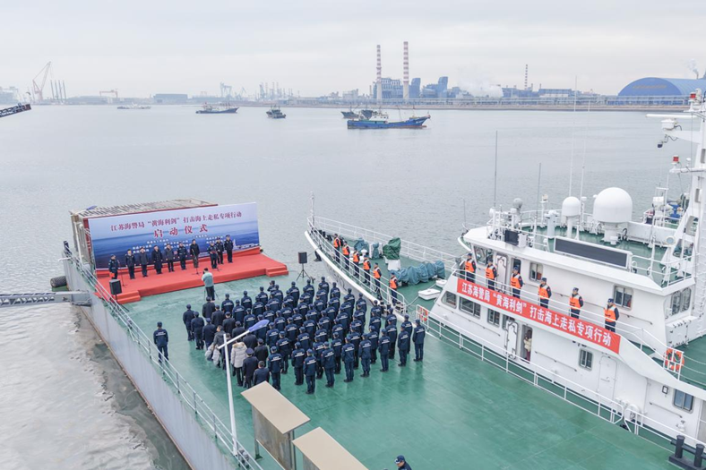 “各单位注意,按照既定方案开展巡查!”今年1月4日,江苏海警局联合8家涉海单位,在南通东灶港码头举行“黄海利剑”打击海上走私专项行动启动仪式。随后,由海警、海事、渔政执法艇组成的舰艇编队,驶向特定海域开展执法巡查,标志着新年度江苏海域执法攻坚战全面打响。