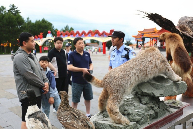 韩博野将法治宣传作为预防违法犯罪的关键抓手,在全国法治宣传周期间精准施策开展活动,让法治精神浸润民心,让法治宣传扎根基层。韩博野到林场、市场、公园等一线场所,搭建普法咨询台、布置宣传展板,向群众发放各类普法宣传资料。现场聚焦食品鉴别、野生动植物保护、合法经营规范等民生热点,耐心为群众答疑解惑。同时,在法治宣传周现场展出大兴安岭地区特色动物标本,让群众直观认识本地珍稀陆生野生动物猞猁、貂熊、中华秋沙鸭等;精心制作并张贴水生动物保护海报,清晰普及大兴安岭辖区内重点保护的下游黑龙江茴鱼、细鳞鲑等水生生物知识,以直观的形式让群众明晰保护范围与法律红线。营造“人人学法、人人守法、人人护生态”的浓厚法治氛围。