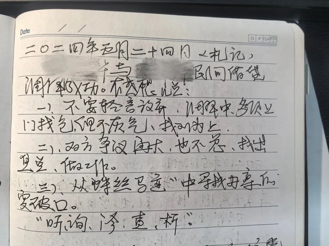 翻看他的笔记,会发现一个规律——那些成功化解的纠纷,都遵循着相似的脉络:“听”尽心声、“询”明细节、“诊”准焦点、“查”清事实、“析”透法理。这套方法,既有法的尺度,也有情的温度。