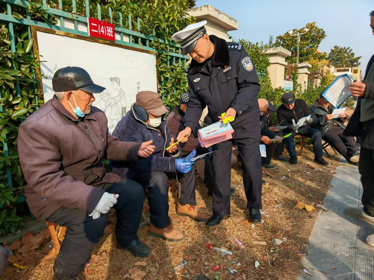 蒙城县公安局交通管理大队深入村庄为村民发放普法资料