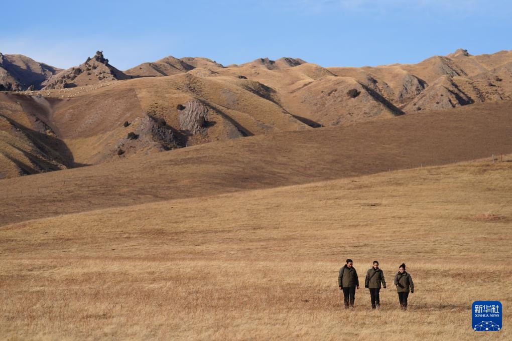 3月6日,祁连山国家公园(候选区)青海片区青阳沟管护站女子管护员在巡护返程途中。新华社记者 张龙 摄