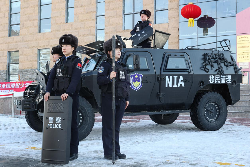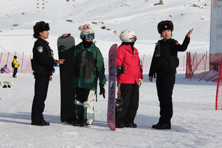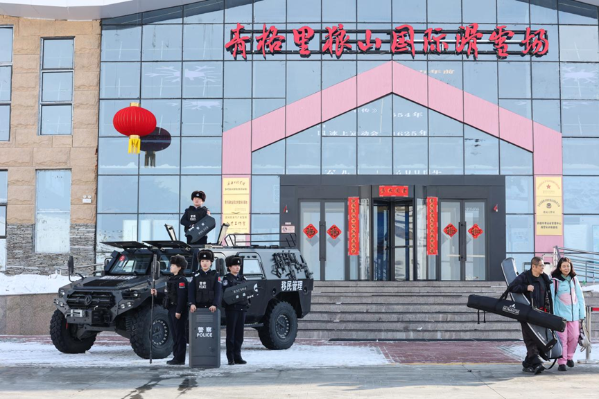 2026年3月6日,民警在青格里狼山国际滑雪场现场执勤。石晓坤摄