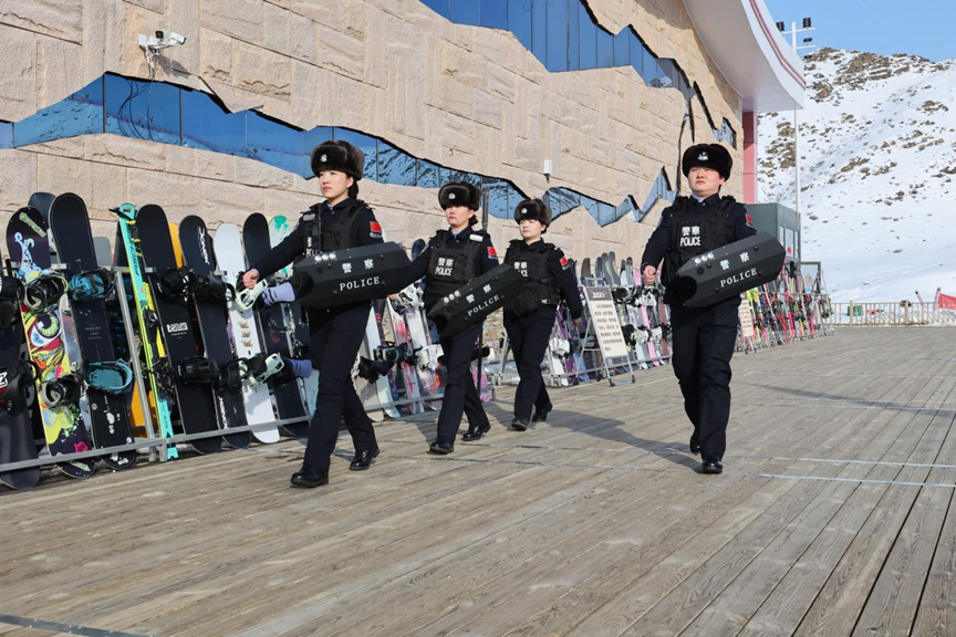 2026年3月6日,民警在青格里狼山国际滑雪场现场巡逻。石晓坤摄