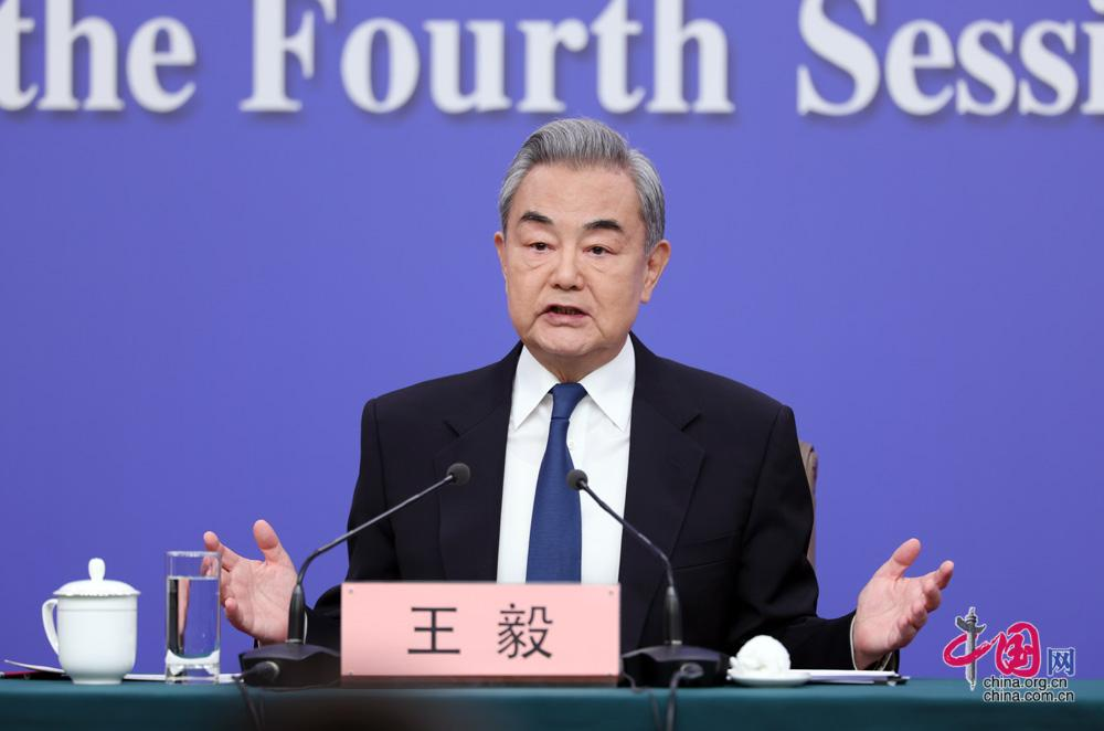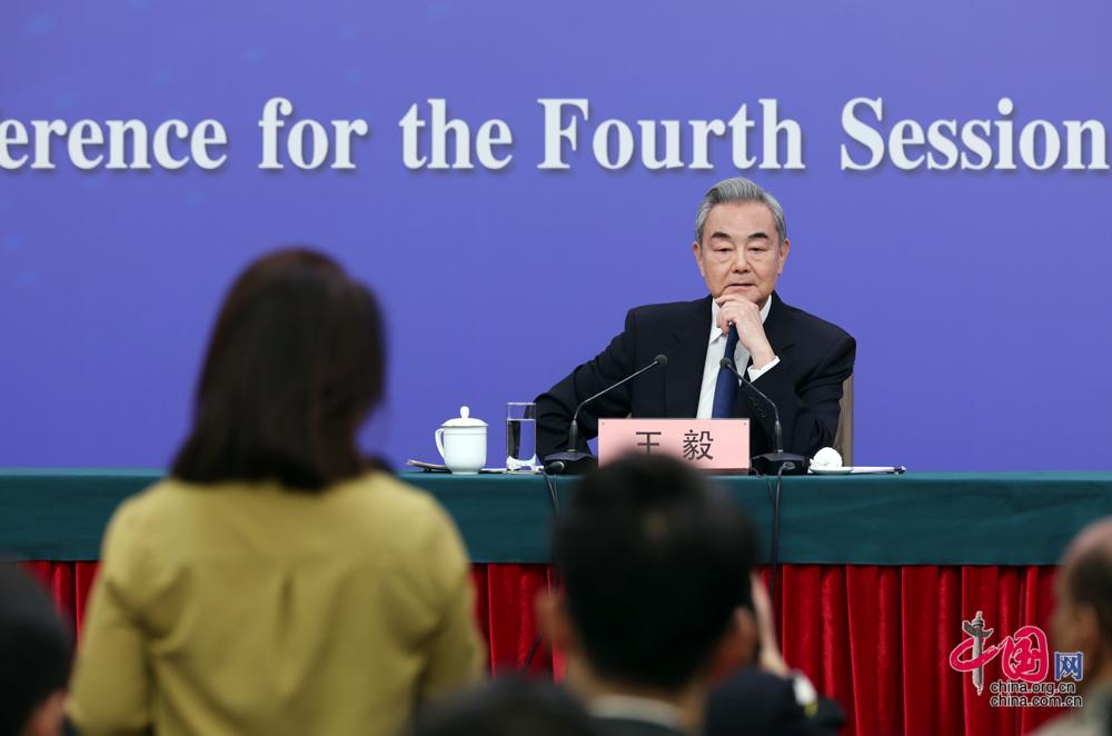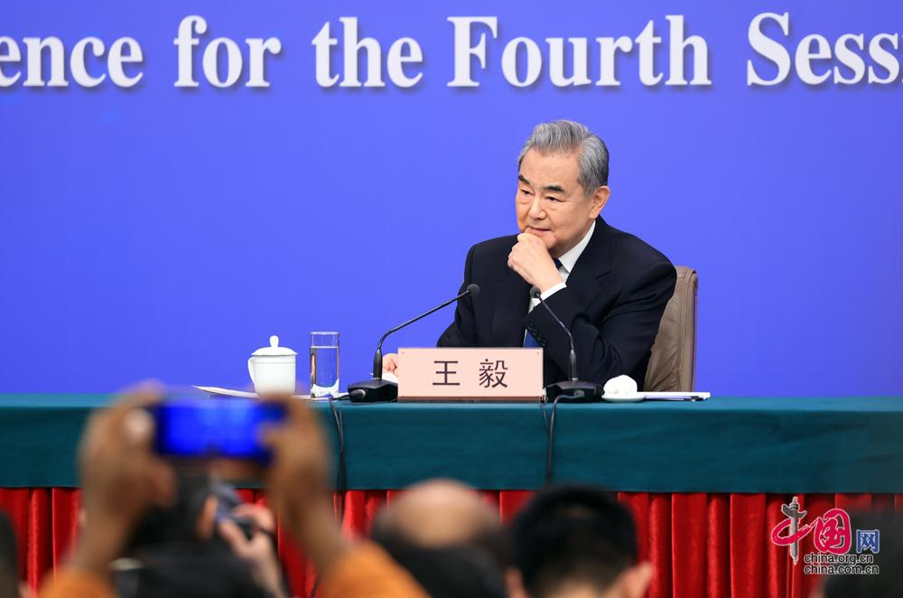 3月8日,十四届全国人大四次会议在北京梅地亚中心新闻发布厅举行记者会。中共中央政治局委员、外交部长王毅就“中国外交政策和对外关系”相关问题回答中外记者提问。中国网记者 郑亮摄影