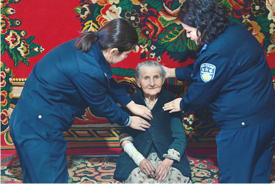 3月6日17时许,春日的暖阳洒进轮台县哈尔巴克乡卡西比西村一位九旬老人的家中。房间内,户籍辅警茹则古丽·艾迪与穆艾热姆·伊敏正用一场上门服务,为老人送去温暖。