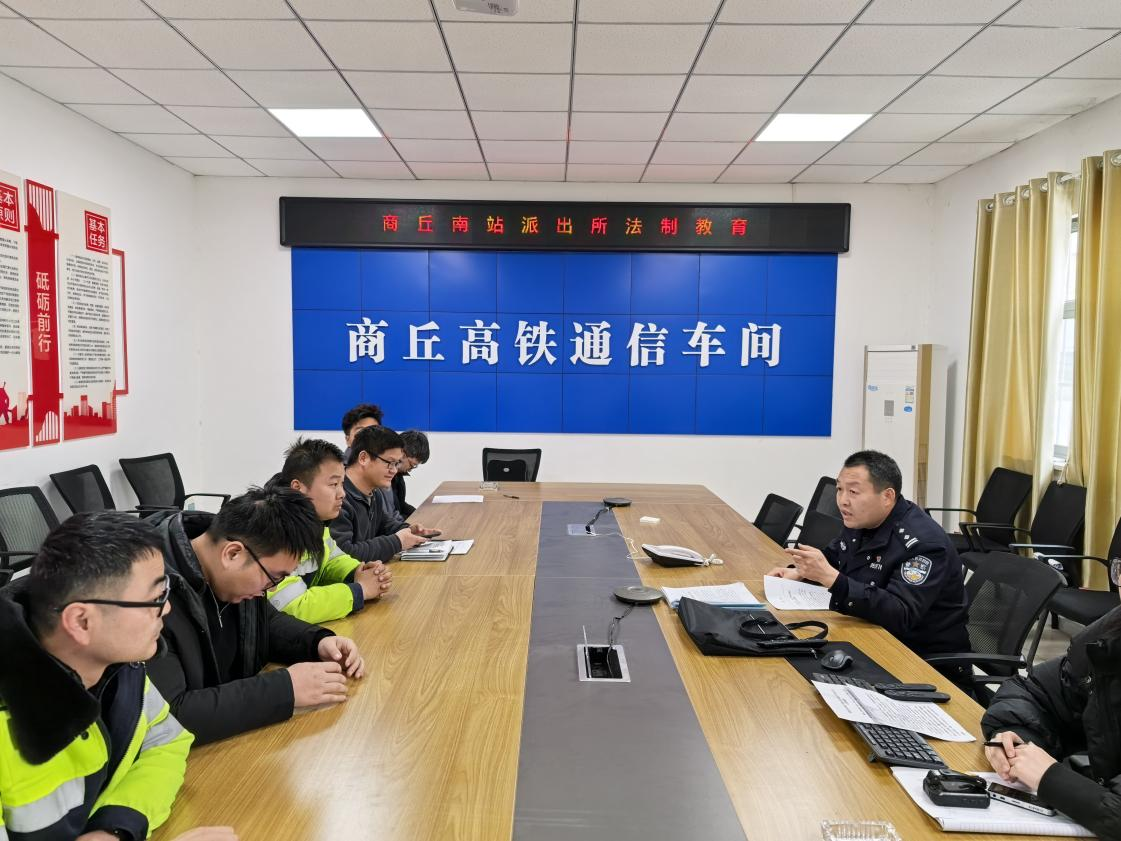 为全面提升铁路内部单位职工法治素养和安全防范能力,筑牢铁路运输安全法治防线,近日,郑州铁路公安局商丘南站派出所组织骨干民警,深入商丘高铁通讯车间、机务段等辖区铁路内部单位,开展主题鲜明、形式多样的法治教育活动,以法治力量护航铁路运输安全有序,深化警企联动协作效能。
