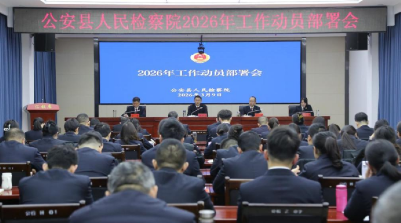3月9日,湖北省荆州市公安县检察院召开全院干警大会,传达全市检察长会议精神,全面总结2025年工作成效,部署2026年重点任务,凝聚全院共识、激发奋进力量。院党组书记、检察长黄乔迁出席会议并讲话。