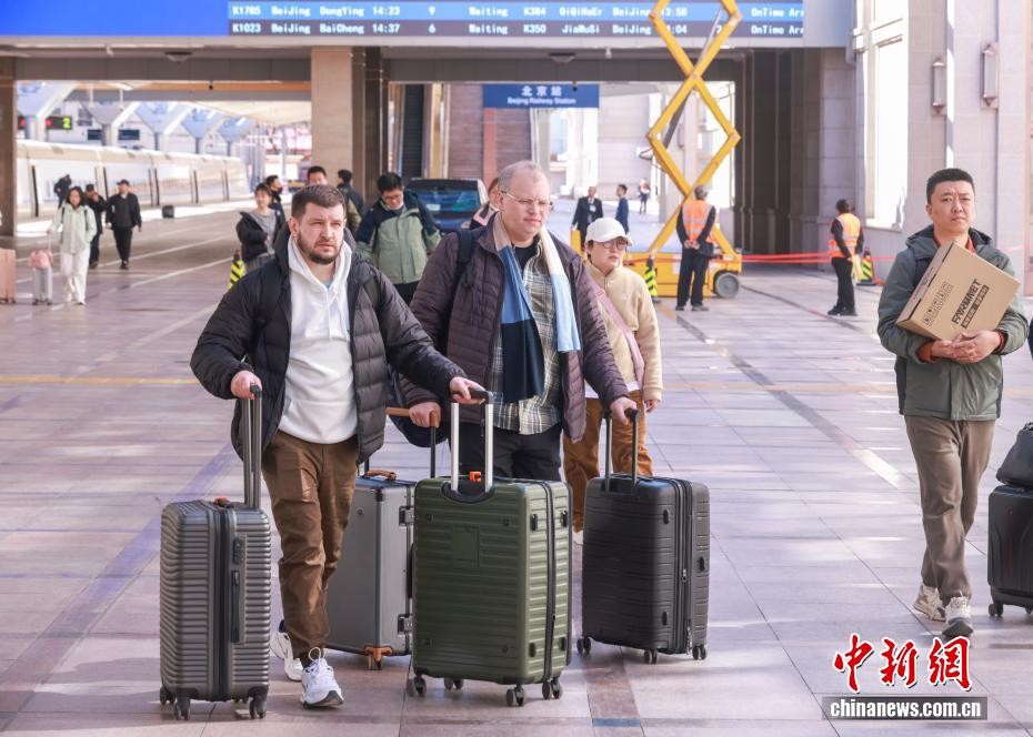 3月11日,外籍旅客在北京站出行。当日是2026年春运第38天,今年春运以来全社会跨区域人员流动量预计超90亿人次。中新社记者 贾天勇 摄