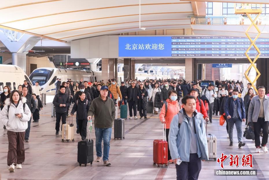 3月11日,旅客在北京朝阳站出行。当日是2026年春运第38天,今年春运以来全社会跨区域人员流动量预计超90亿人次。中新社记者 贾天勇 摄