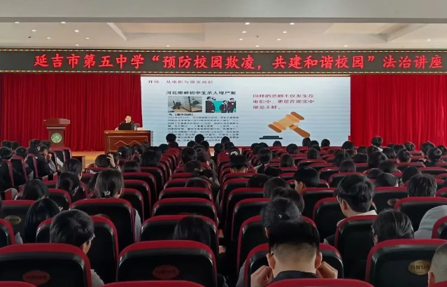 延吉市人民法院到延吉市第五中学开展“预防校园欺凌,共建和谐校园”主题法治讲座