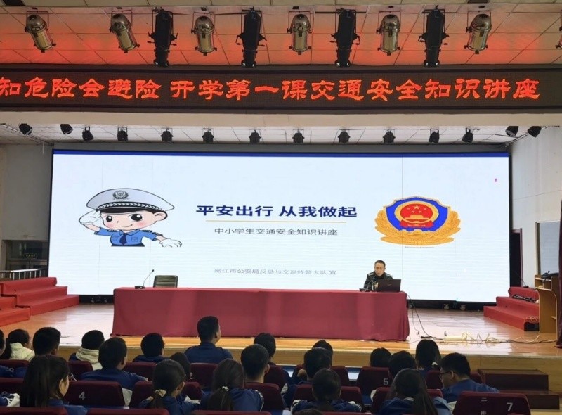 反恐与交巡特警大队民辅警围绕交通安全出行、文明过马路、乘车安全、一盔一带等内容,用贴近学生生活的真实案例,讲解步行、骑行、乘车等日常出行中的安全注意事项,教育引导学生自觉遵守交通法规,远离交通危险,提高自我防护能力。
