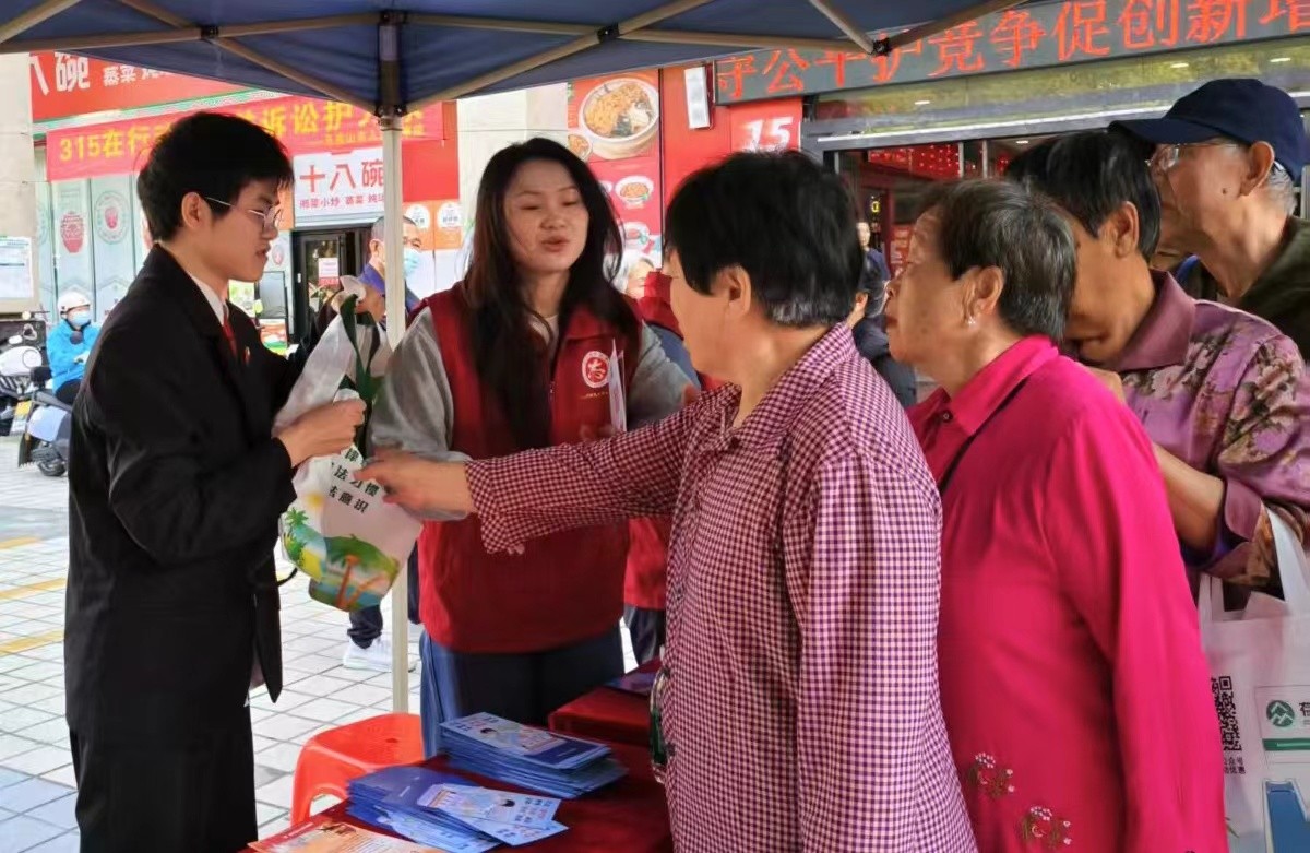 活动现场专门设置消费维权法律法规咨询台,法院干警与各单位工作人员一同向过往市民发放普法宣传资料,围绕线上线下购物、合同履约、食品药品安全、个人信息保护、消费纠纷化解等群众关心的热点问题,提供一对一法律咨询和答疑服务。现场通过图文展板集中展示消费维权工作成效及典型案例,以案释法、以案普法,既彰显了依法维护消费者合法权益的坚定力度,也为广大经营者敲响诚信经营、守法经营的警示钟。