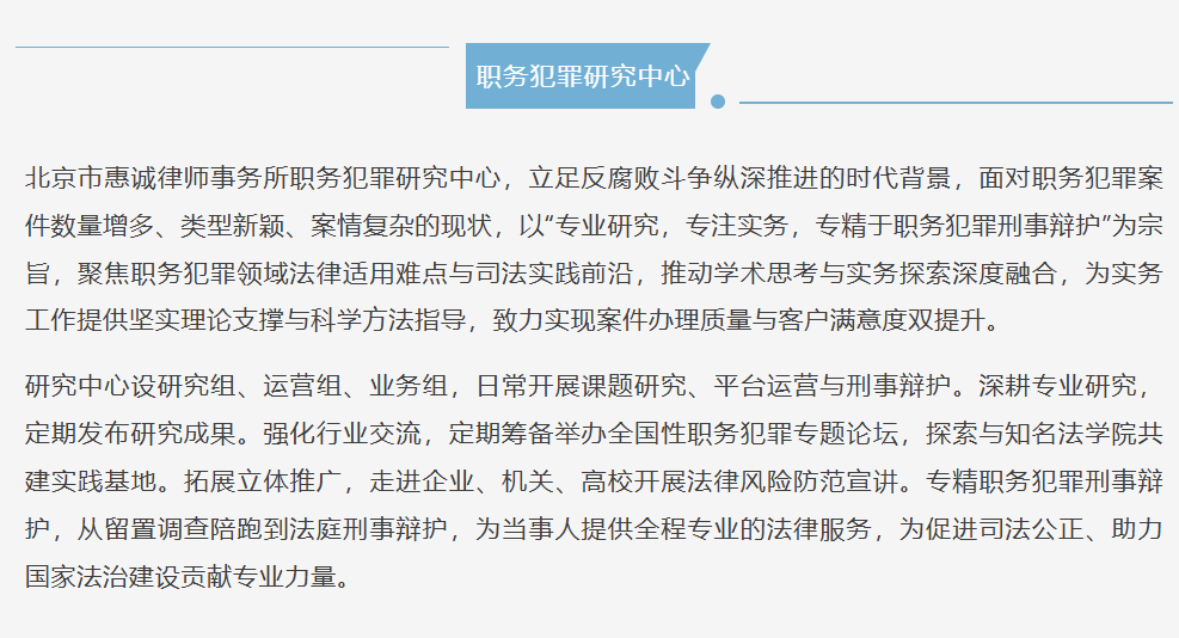 作为(惠诚)职务犯罪研究中心主任,同时兼任北大研究生院内训讲师、中国政法大学特邀讲师、北京电视台特邀评论员等多重身份,他以半生坚守践行初心,以过硬专业守护公平正义,成为困境中当事人可信赖的“引路灯”,亦是法律界当之无愧的追光者。