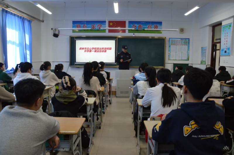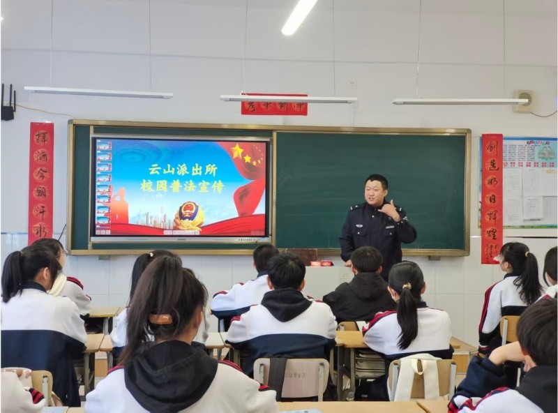 为进一步增强学生法治观念和安全防范意识,筑牢校园安全防线,营造平安、文明、和谐的育人环境,近日,黑龙江省虎林市云山学校联合云山派出所开展“派出所进校园”专题讲座。