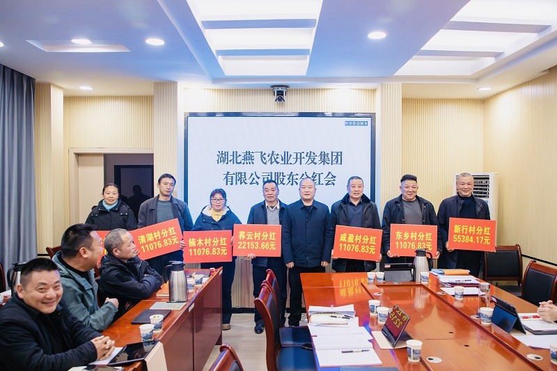 “过去一年,公司在大家的共同努力下,稳步推进各项业务,交出了一份亮眼的成绩单。”镇人民政府副镇长于本卓在总结2025年工作时表示,经过一年的深耕细作,湖北燕飞农业开发集团有限公司实现盈利424604.16元,按照分红方案,本次共向股东分红177229.3元,这份沉甸甸的硕果,是强村富民承诺的生动兑现。