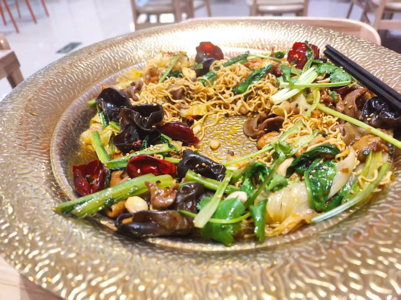川合成麻辣香锅(银泰店)端上来的餐盘又大又圆,实际餐盘深度很有限