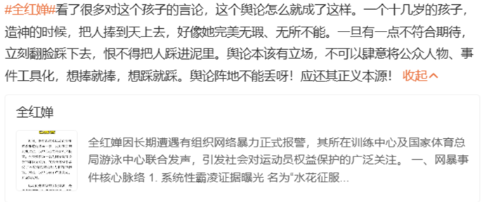 事件发生后,广大网友纷纷发声,心疼全红婵等为国拼搏的运动员,谴责有组织的恶意抹黑行为,认为运动员在赛场奋力拼搏,理应得到最基本的尊重与包容。有体育爱好者直言,当前舆论环境陷入了“造神时捧上天,稍有不符预期就踩进泥里”的怪圈,这种捧杀与棒杀的行为,完全偏离了关注体育精神的初衷。
