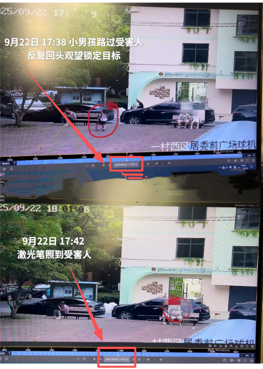 刘先生透露,当时其妻子看到有绿色光圈从楼上照射下来,随即发现对面楼上有一扇窗户打开,一个小孩正从窗户探出头,于是立刻找到了这户人家。当时男孩独自在家,民警通过男孩的电话手表联系到其家长,并致电告知情况。“当时那个小孩就承认是他用激光笔照射的。”刘先生说,确认情况后,他便报警了,民警调取了小区监控,同时做了笔录,整个证据链完整清晰。