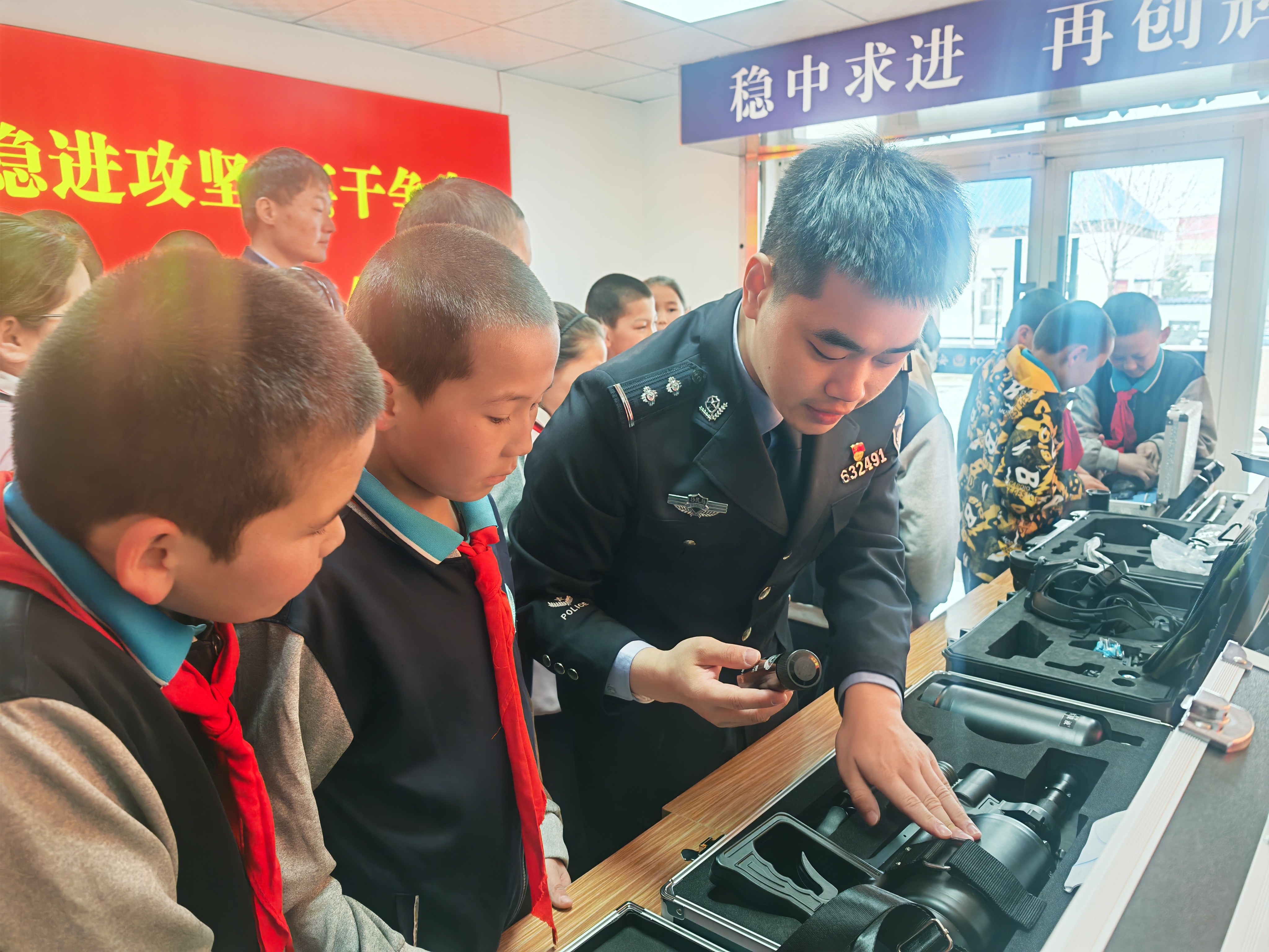 “以后我也要告诉小伙伴,我亲手摸过警械啦!”在警械展示环节,同学们兴奋地体验各类装备,近距离感受警营的威严与担当。随后,师生们还参观了警营健身房,直观感受民警刻苦练兵、强体砺能的过硬作风,深刻领悟戍边民警忠诚履职的使命担当。