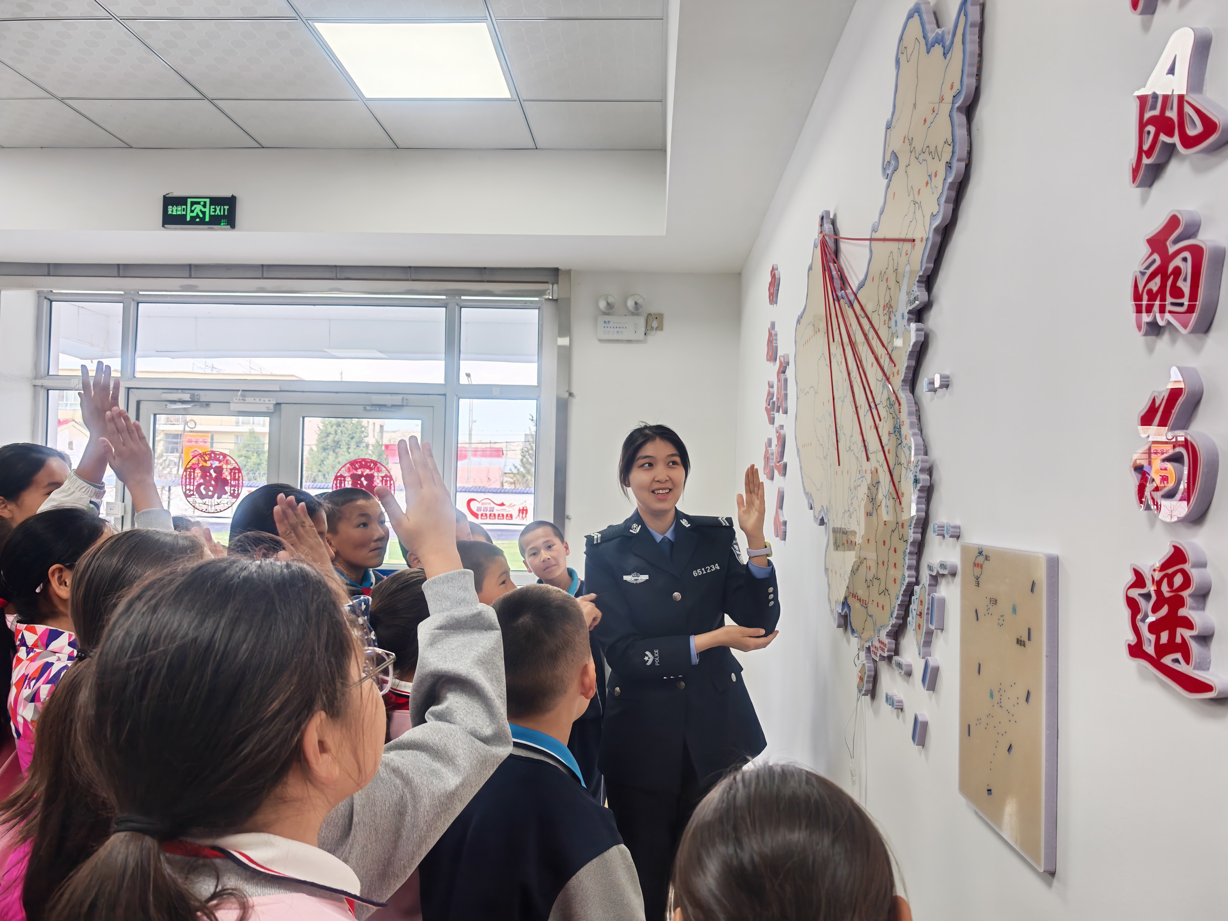 走进荣誉室,民警通过一块块荣誉牌匾、一张张执勤照片,深情讲述了一代代民警扎根边疆、守土尽责的戍边故事。在普及边境安全常识的同时,引导同学们铭记国安责任,将家国情怀融入心田。