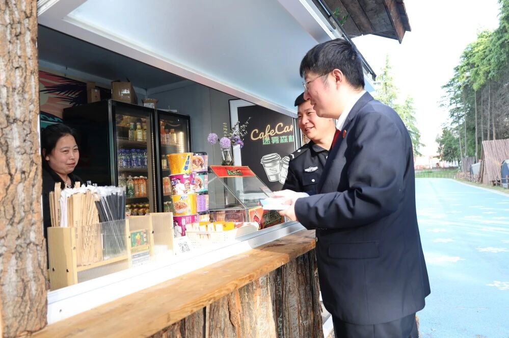 走进迷雾森林景点,干警们到林间商户与游客之中。向商户强调合法经营、安全经营的重要性,讲解纠纷多元化解途径,帮助商户提升依法经营与防范法律风险的能力;向游客普及生态环境保护、文明游玩相关法律法规,倡导大家爱护景区环境、遵守游玩秩序, 通过分层分类普法,让法治理念浸润景区每一个角落。
