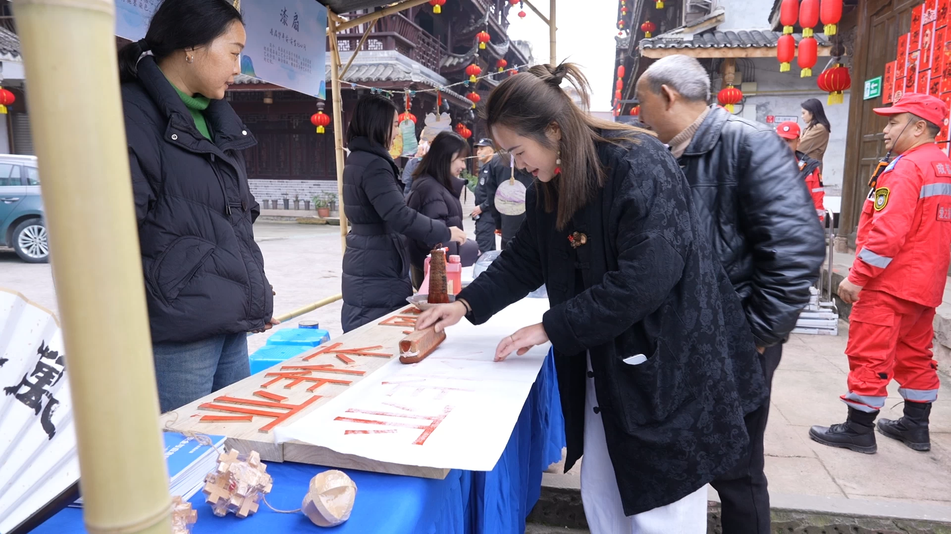 “来,您试试?先把宣纸铺平整,再用刷子顺着字的方向压,力道匀着点就行。”传承人梁川见刘先生驻足,顺手递过一把木质刷子。刘先生接过刷子,跟着他示范的动作往下压,随着宣纸慢慢揭开,“不通风、不作业”六个字便显现在纸上。刘先生也跟着念出了声,小心翼翼举着作品,欣喜地说道:“这下可记牢了!”