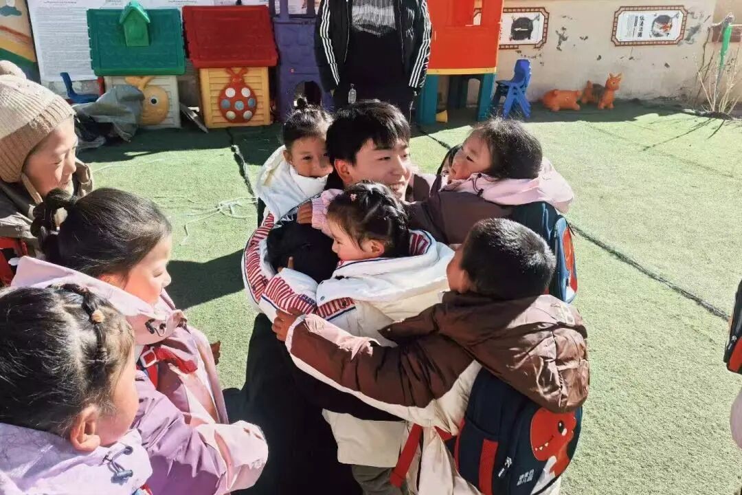 在德麦巴村幼儿园的院子里,一群脸蛋上印着“高原红”的孩子们,正围坐在一位身穿驻村工作服的叔叔身边。他们手中捧着崭新的书包,眼睛里闪烁着阳光般的好奇与喜悦。