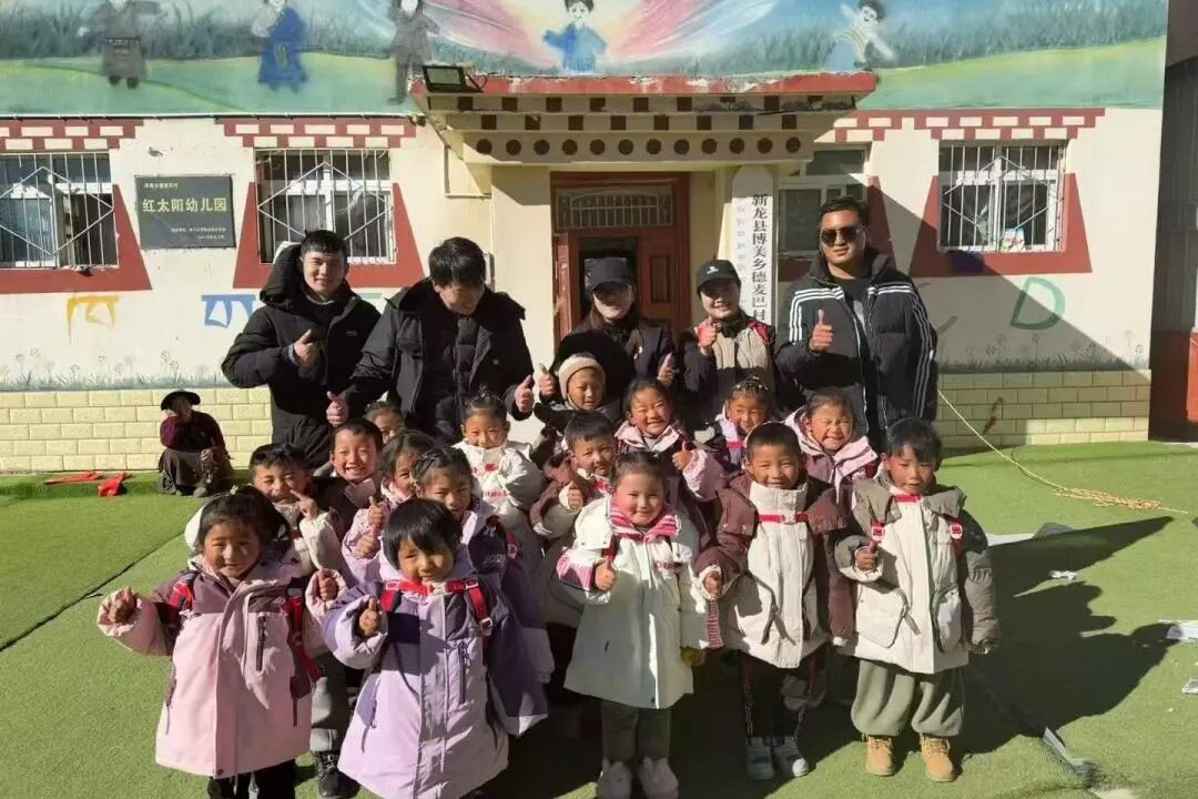互动游戏时间,孩子们的笑声在高原清澈的空气中回荡。韩夏说:“这些衣物能让孩子们暖和一点;书包里的绘本,希望能帮他们打开看世界的窗口。”