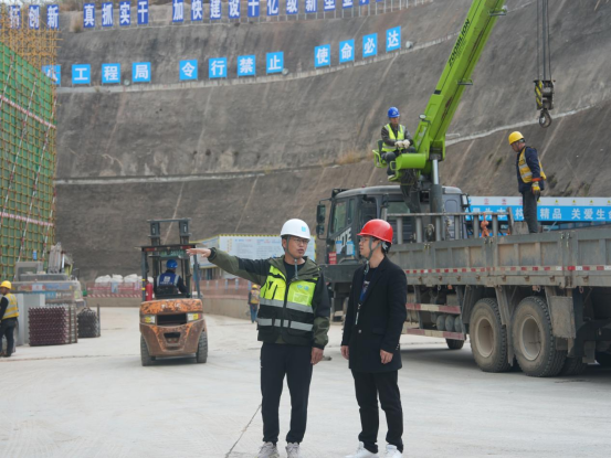 涪城区纪检监察干部在新型显示产业园区基础设施建设项目现场了解复工情况。(宗丽 摄)