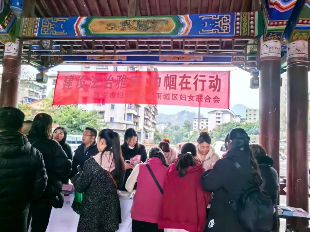 人民法治网四川讯 为深化法治宣传教育和妇女儿童维权服务,引导广大妇女增强法治观念,依法维护自身权益,3月5日,四川省雅安市妇联组织市公安局、市检察院、市法院、市司法局、市总工会、团市委、市残联、四川明炬(雅安)律师事务所、四川发现(雅安)律师事务所、雅安市儿童友好公益服务中心、雅安市童心友好空间、雨城区相关单位,在雨城区东大街小廊桥开展2026年“三八维权周”法治宣传教育活动。