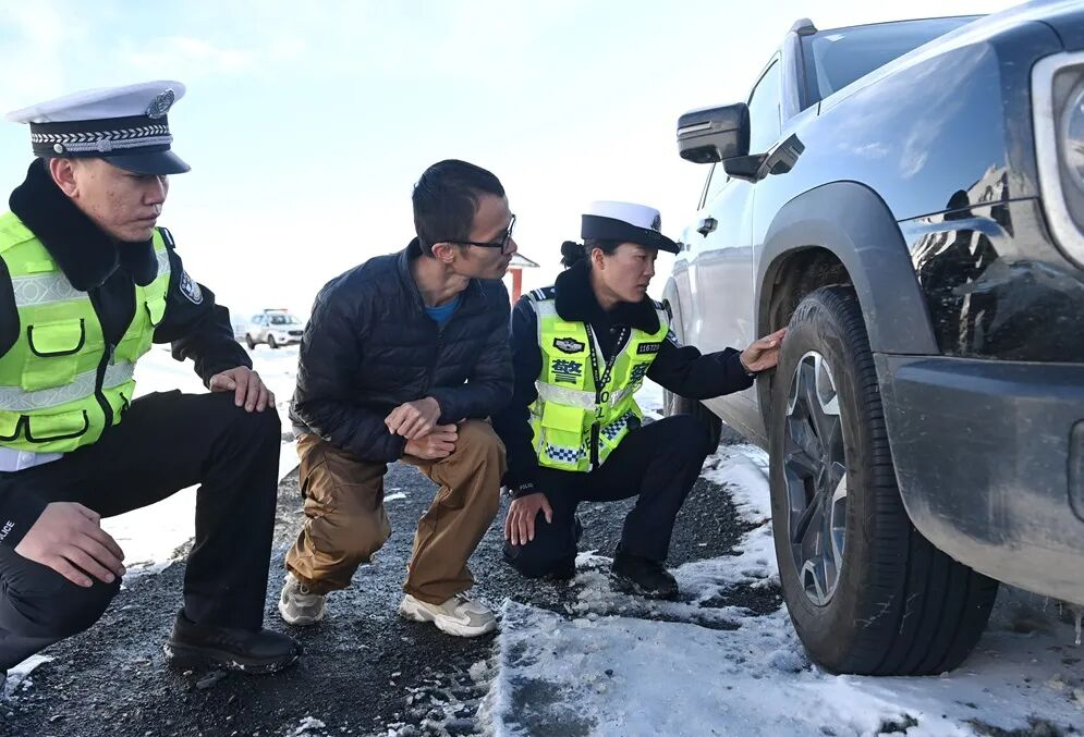 春节期间,鸡丑山遭遇风雪侵袭,王群带队驻守海拔4750米的观景台执勤点——这里既是游客打卡热点,更是交通管控关键节点。风雪天里,她带头清理积雪和路上的滚石、布设警示标识,劝导游客远离临崖危险区域,徒手帮打滑车辆推车、跪地协助安装防滑链,双手冻得通红仍坚守岗位,全力守护全域旅途平安。