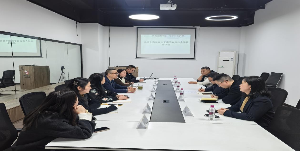 3 月 10 日下午,幸福人寿宜宾中支与宜宾技术学院在公司会议室举行校企合作交流座谈会。双方围绕人才培养、金融宣传、校园科普达成共识,共促金融安全与人才培育双向赋能。重点推进三项合作:一是对接就业招聘,搭建人才供需平台,为高校毕业生提供实习实践、岗位推荐、定向招聘等就业机会。二是共建金融宣传普及机制,以 “清朗金融网络 守护安心消费” 为主题,常态化开展金融知识宣教,提升师生金融安全意识和风险防范能力。